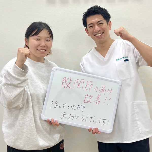 股関節痛で左足の外側にしばらく体重をかけられませんでした。痛みと怖さが両方ありました。先生に足首とふくらはぎの施術をしてもらい、体重がかけられるようになりました!陸上も安心して取り組めます!